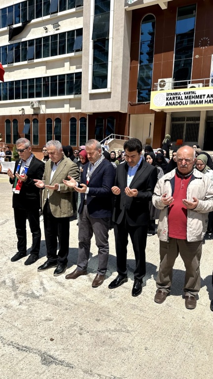 Kartal Mehmet Akif Ersoy Anadolu İHL olarak bugün bir kez daha Filistin'li kardeşlerimiz için tek yürek olduk. Okul öğrencilerimiz bahçede Gazze' de yıkılan okulları ve şehit olan öğrencileri temsil eden bir eylem hazırladı. Eylemin ardından şehit olan öğrenciler için gıyabi cenaze namazı kılındı ve kardeşlerimiz için dua edildi. Destek olan bütün velilerimize, öğretmen ve öğrencilerimize, STK lara teşekkür ediyoruz. Tekrar haykırıyoruz ki bir gün elbette "Nehirden denize özgür Filistin"